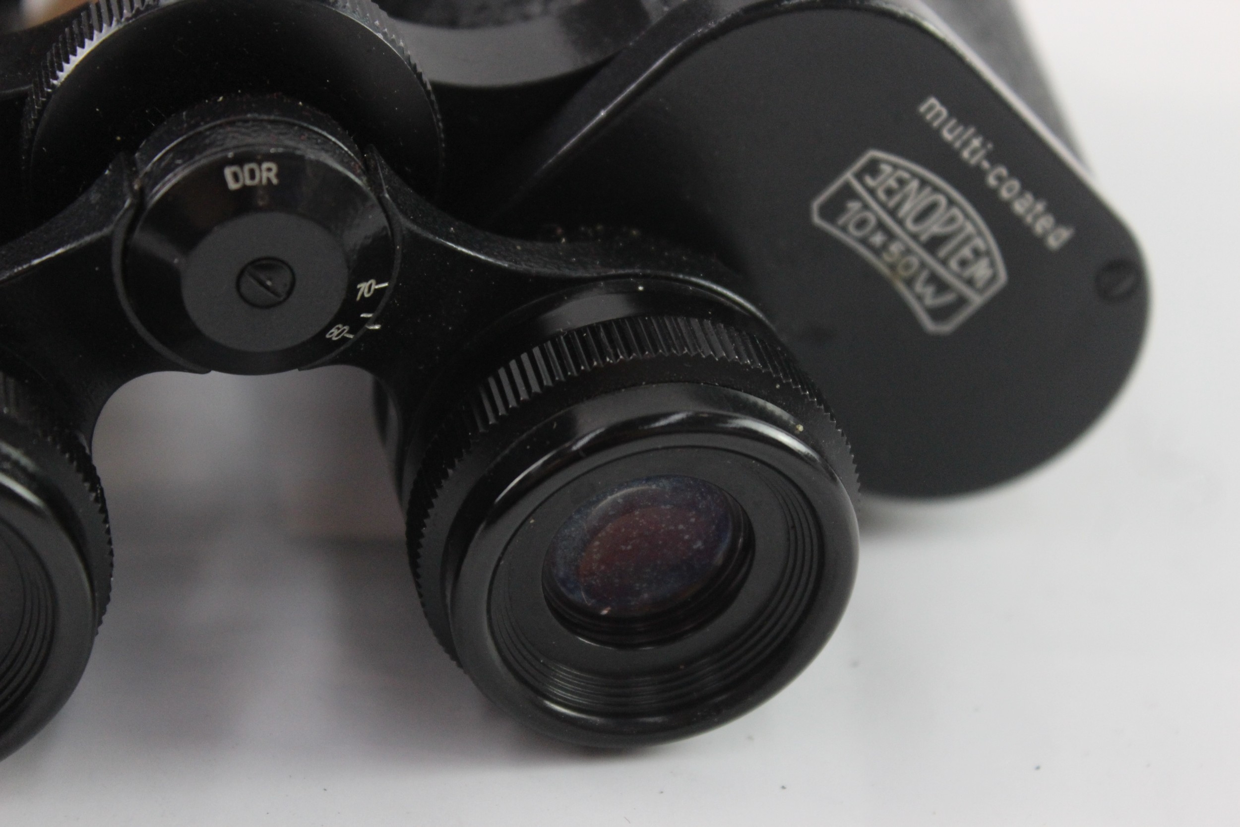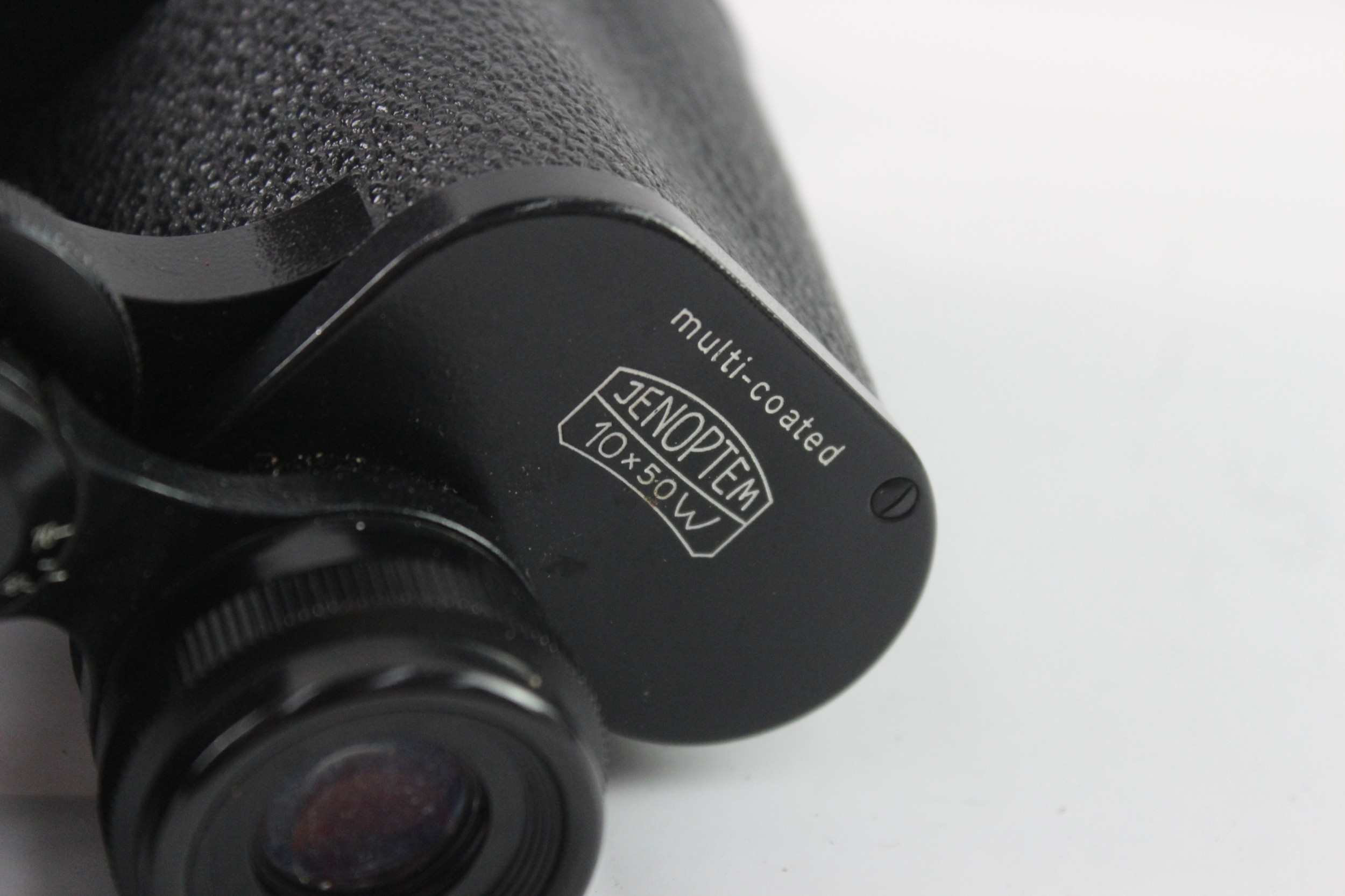 A cased pair of Carl Zeiss Jenoptem 10x50W multi-coated binoculars