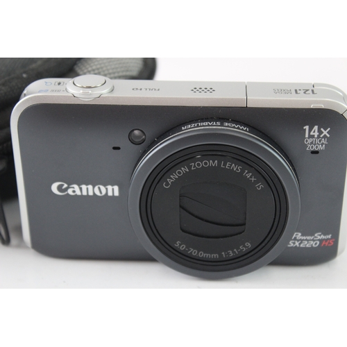 A cased Canon PowerShot SX220 HS 12.1mp BSI-CMOS sensor compact digital camera