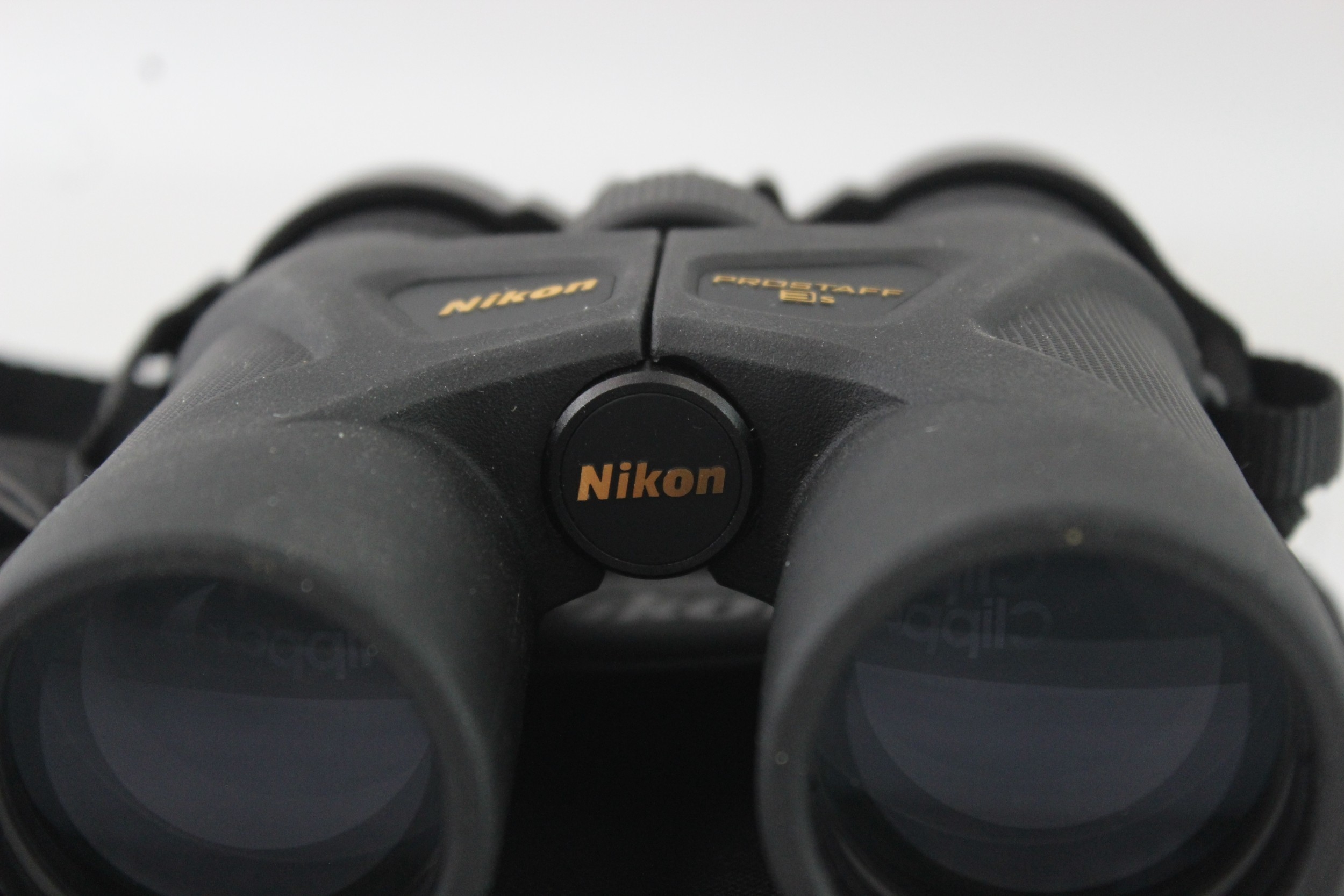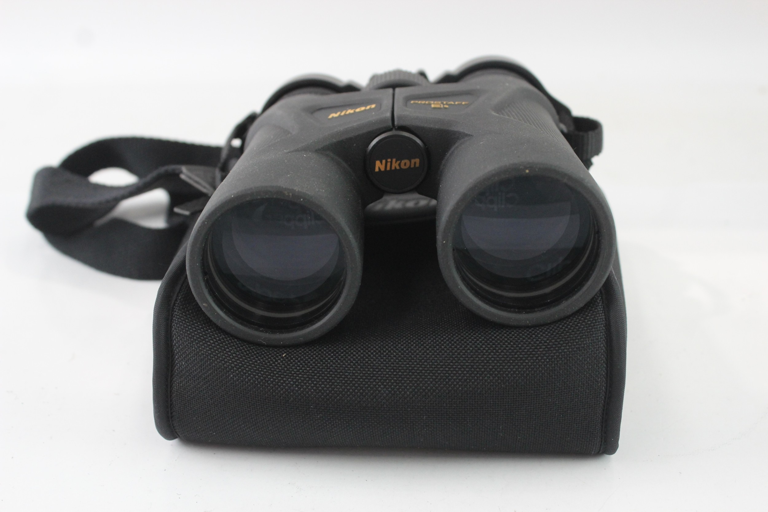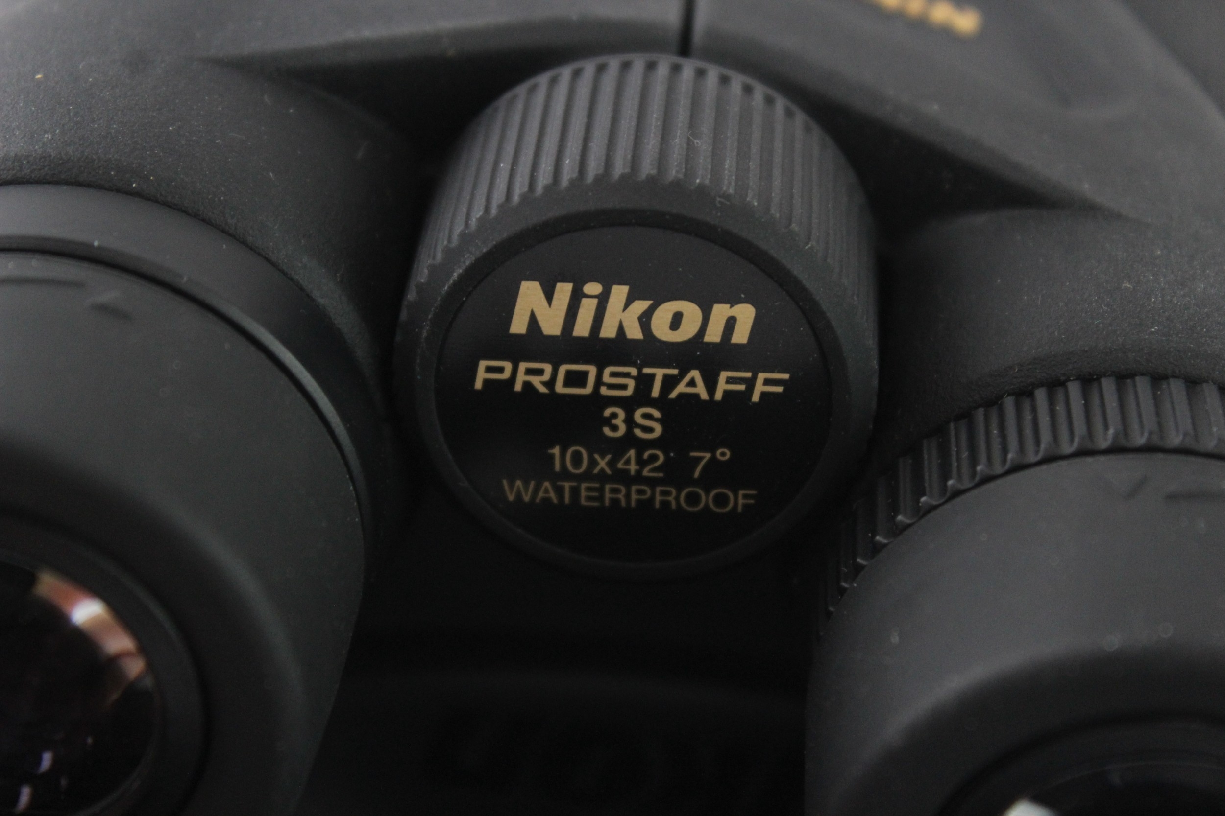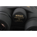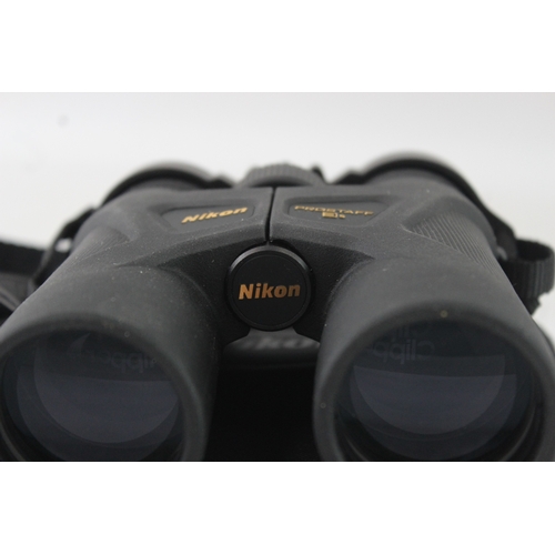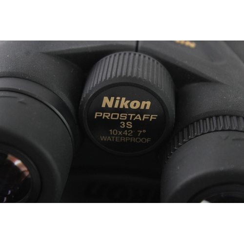 A cased pair of Nikon Prostaff 3S 10x42 waterproof binoculars