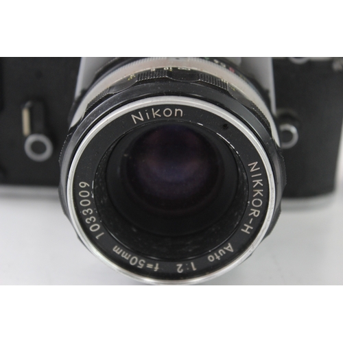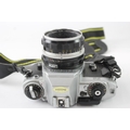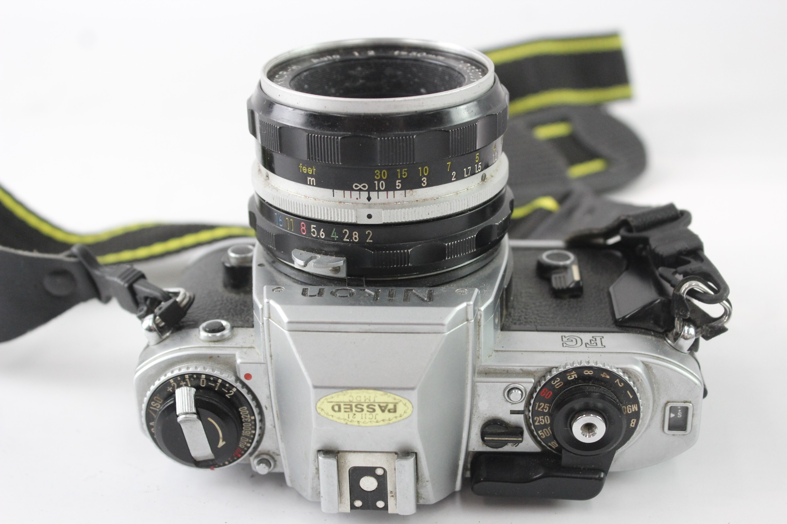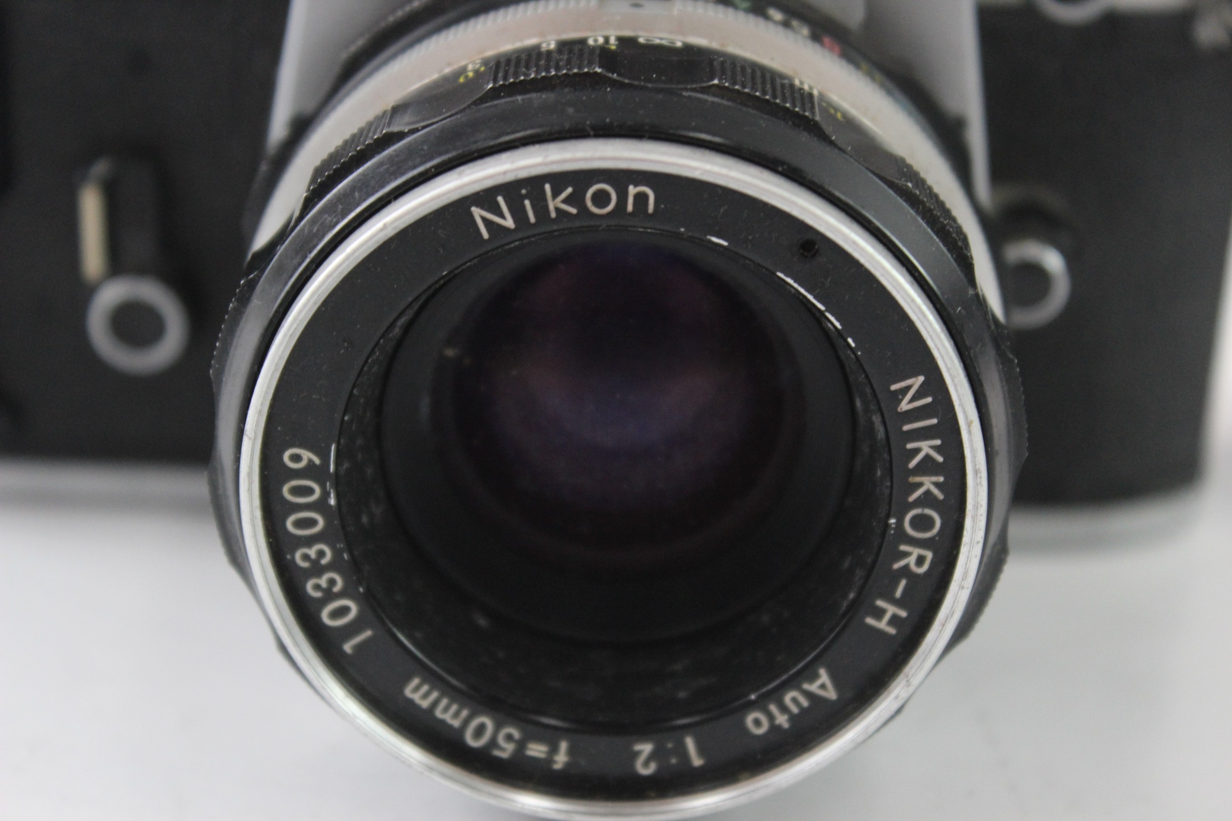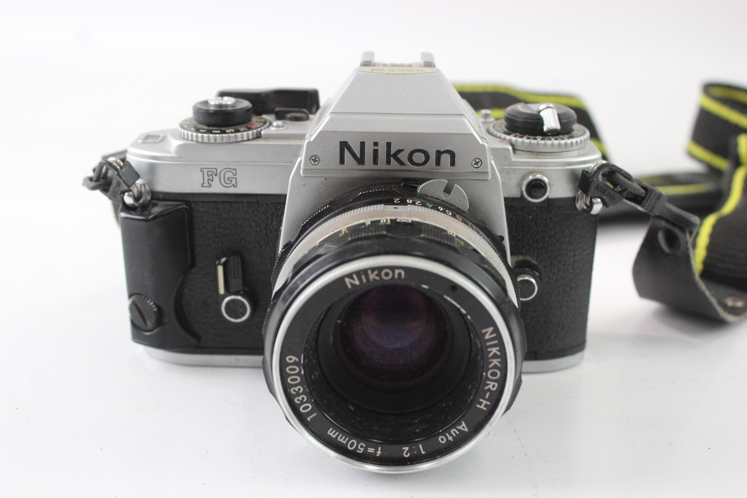 A Nikon FG 35mm SLR camera fitted with Nikkor-H 1:2 50mm lens