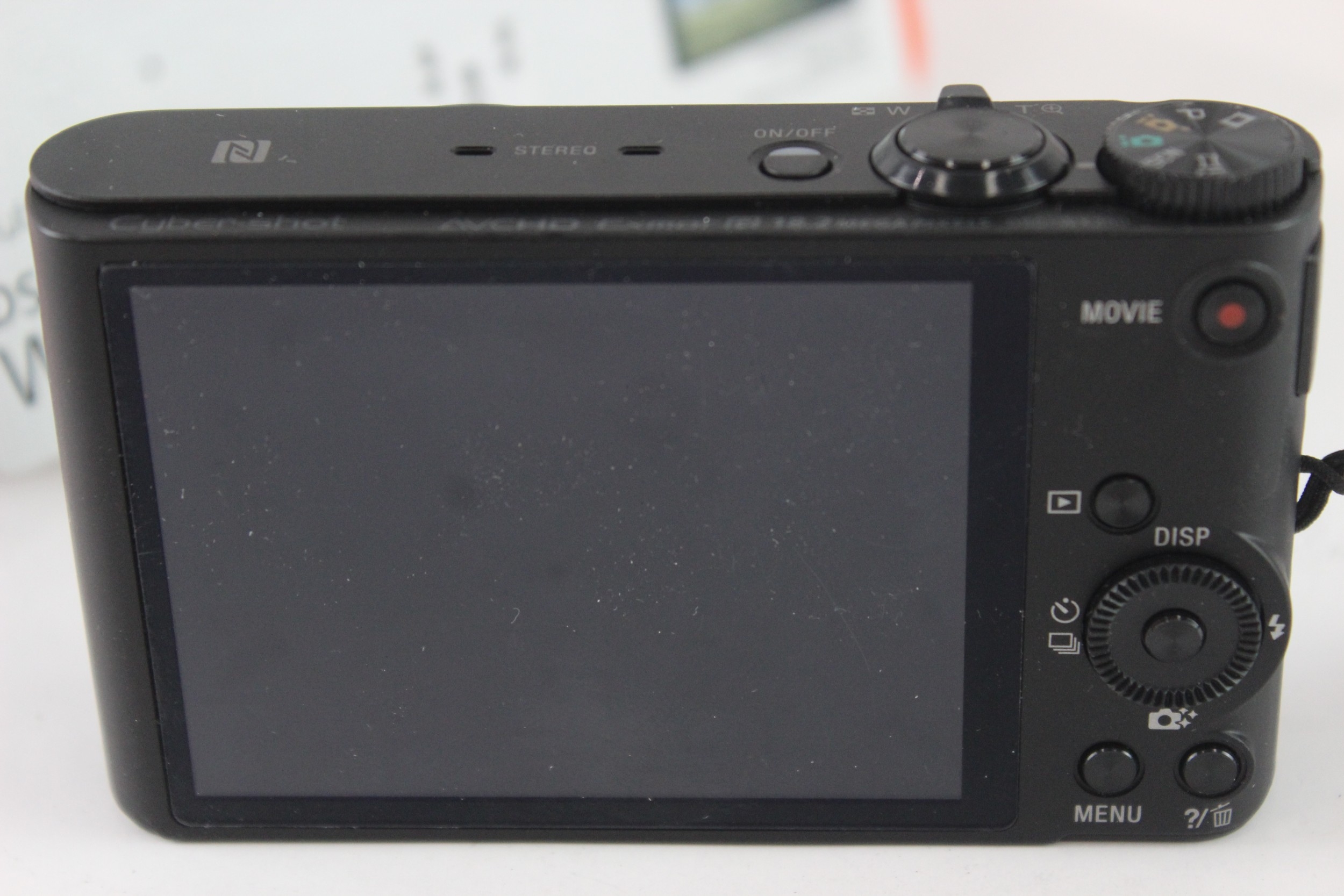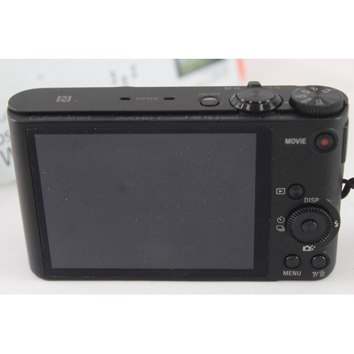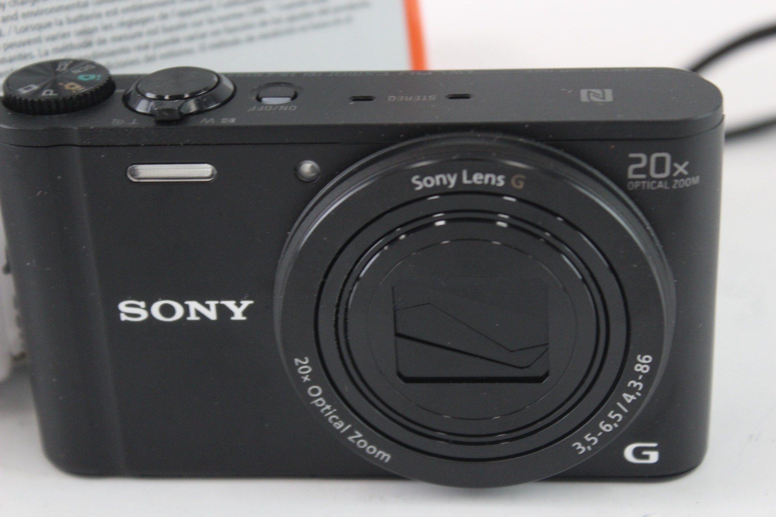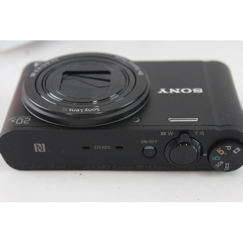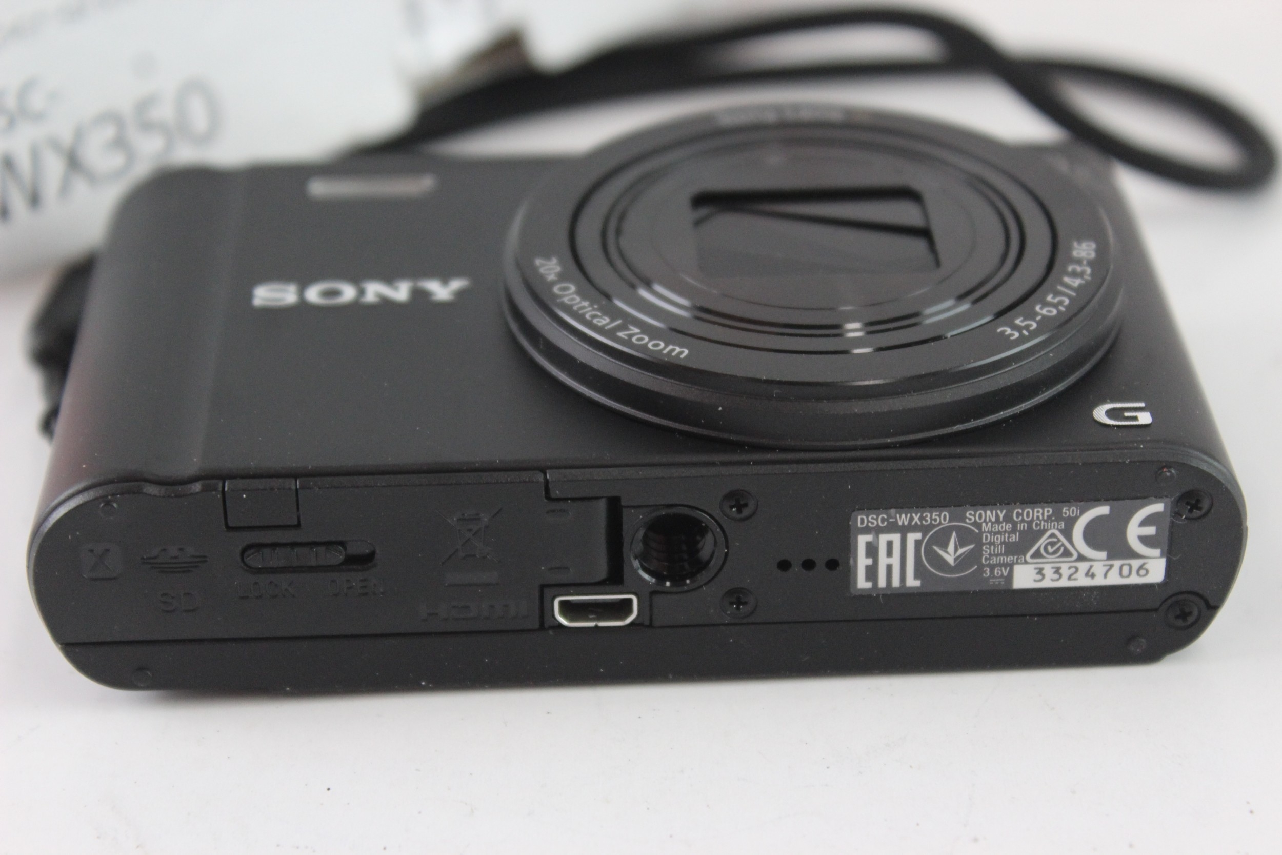 A boxed Sony Cyber-shot DSC-WX350 18.2mp Exmor-R CMOS sensor compact digital camera with charger and instruction manual