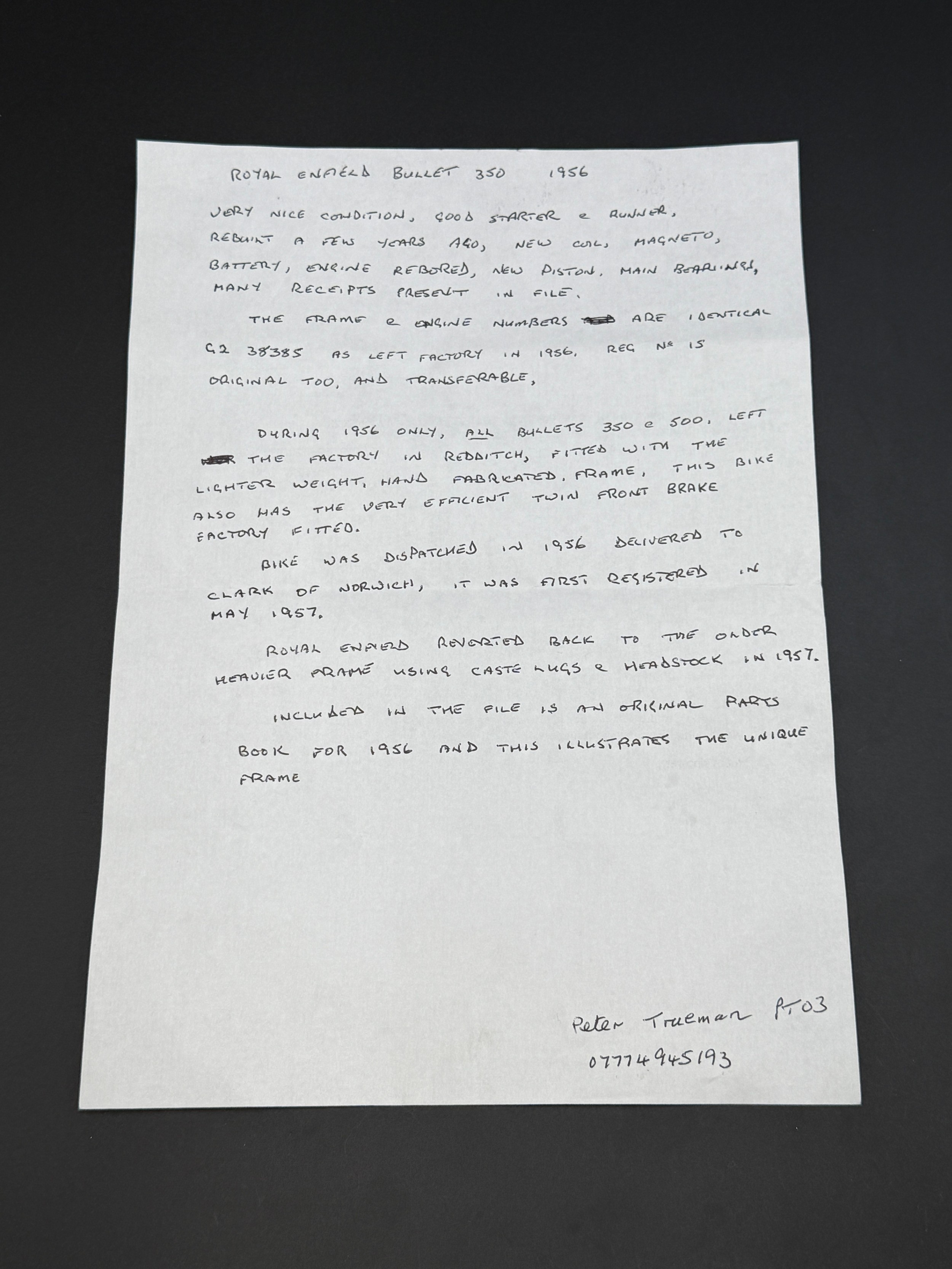 A 1956 Royal Enfield Bullet 350 motorcycle