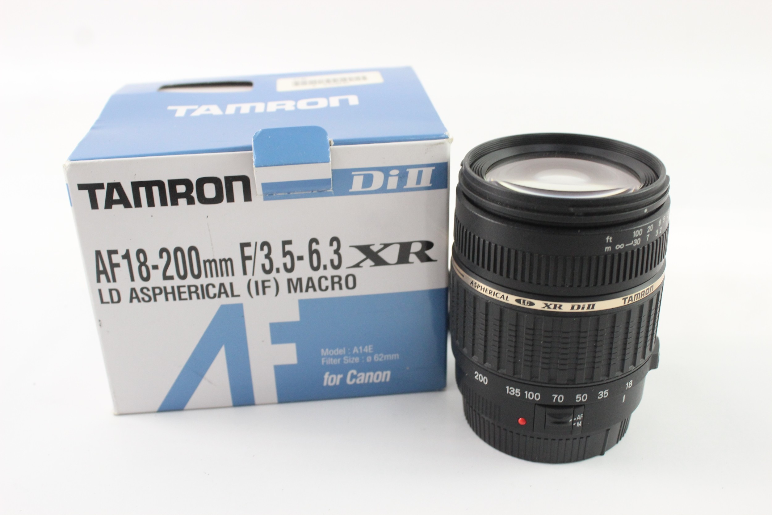 A boxed Tamron aspherical LD XR DiII 1:3.5-6.3 18-200mm macro lens for Canon AF