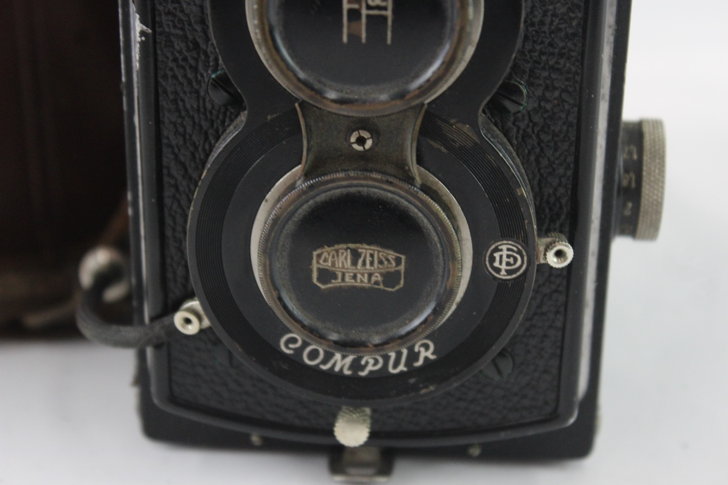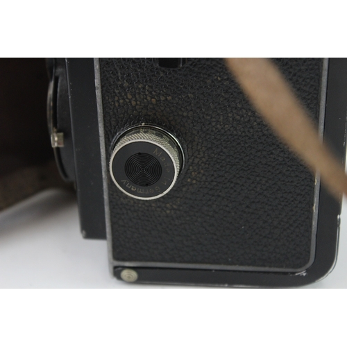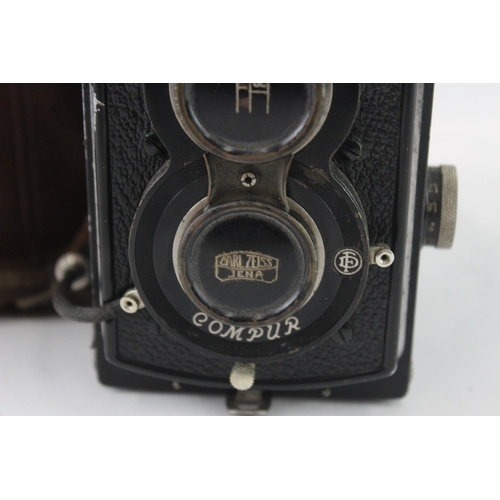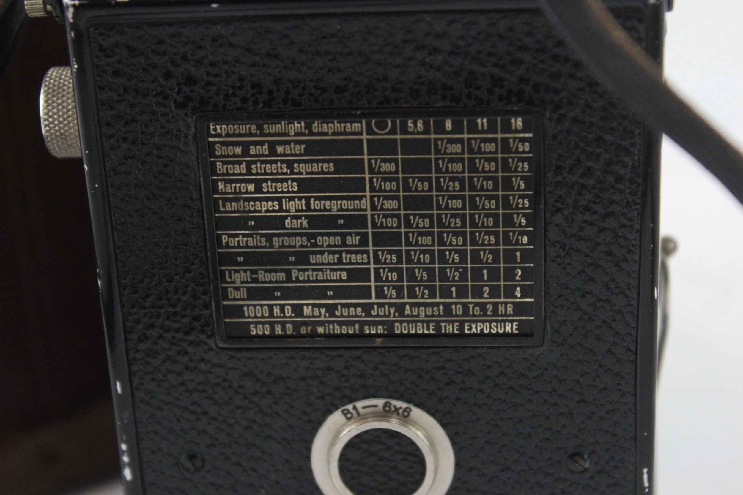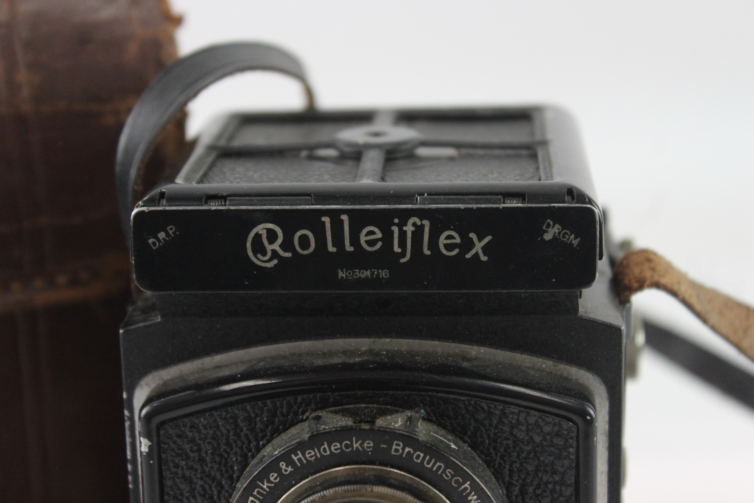 A cased mid 1930s Franke & Heidecke Rolleiflex 'Old Standard' K2 621 TLR camera for 6x6 images on 120 film fitted with Heidoscop-Anastigmat 1:3.1 7.5cm viewing lens, Carl Zeiss Tessar 1:3.8 7.5cm taking lens and Compur shutter with lens cap
