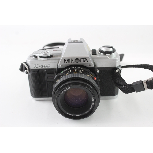 A Minolta X-300 35mm SLR camera fitted with MD 1:1.7 50mm le...