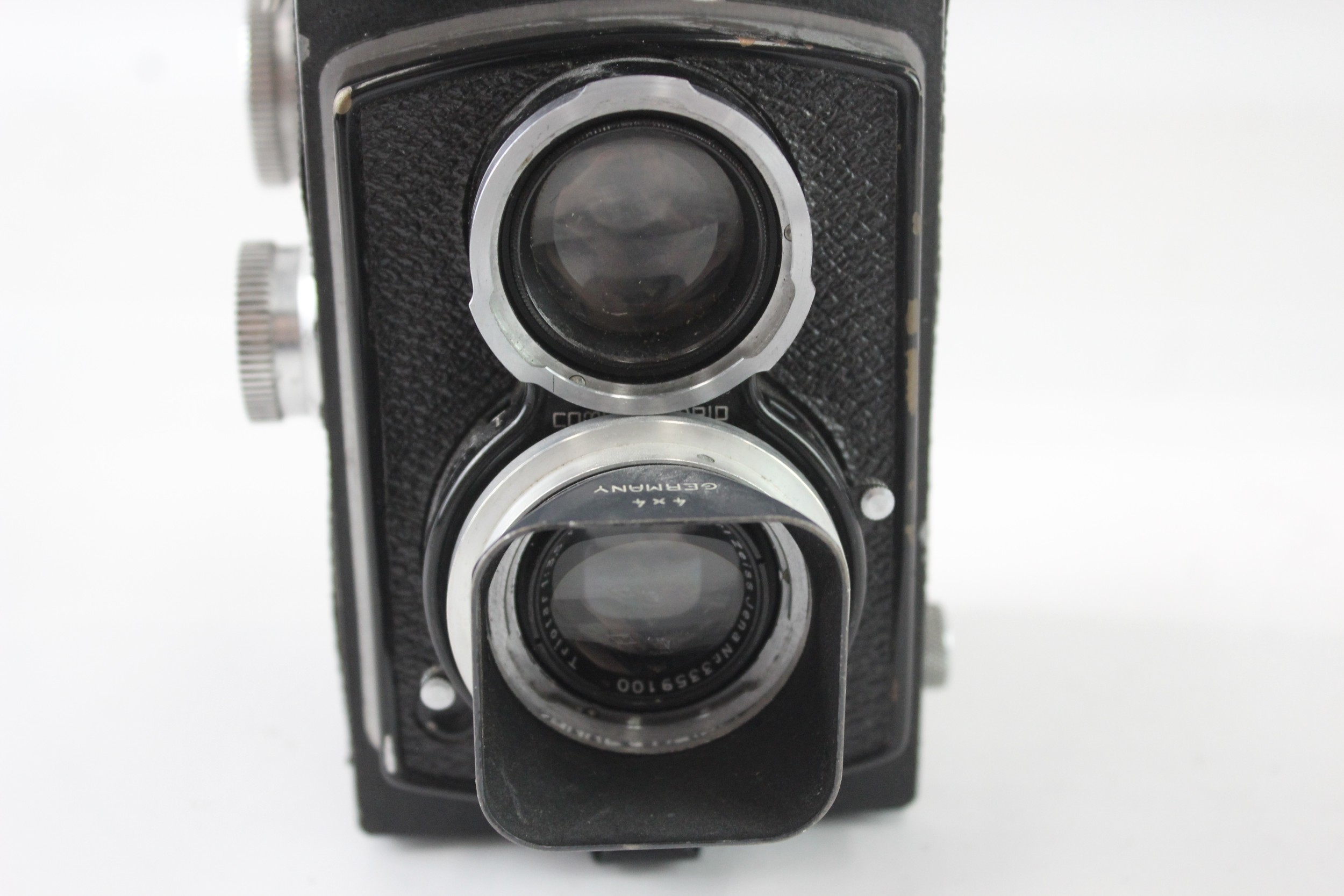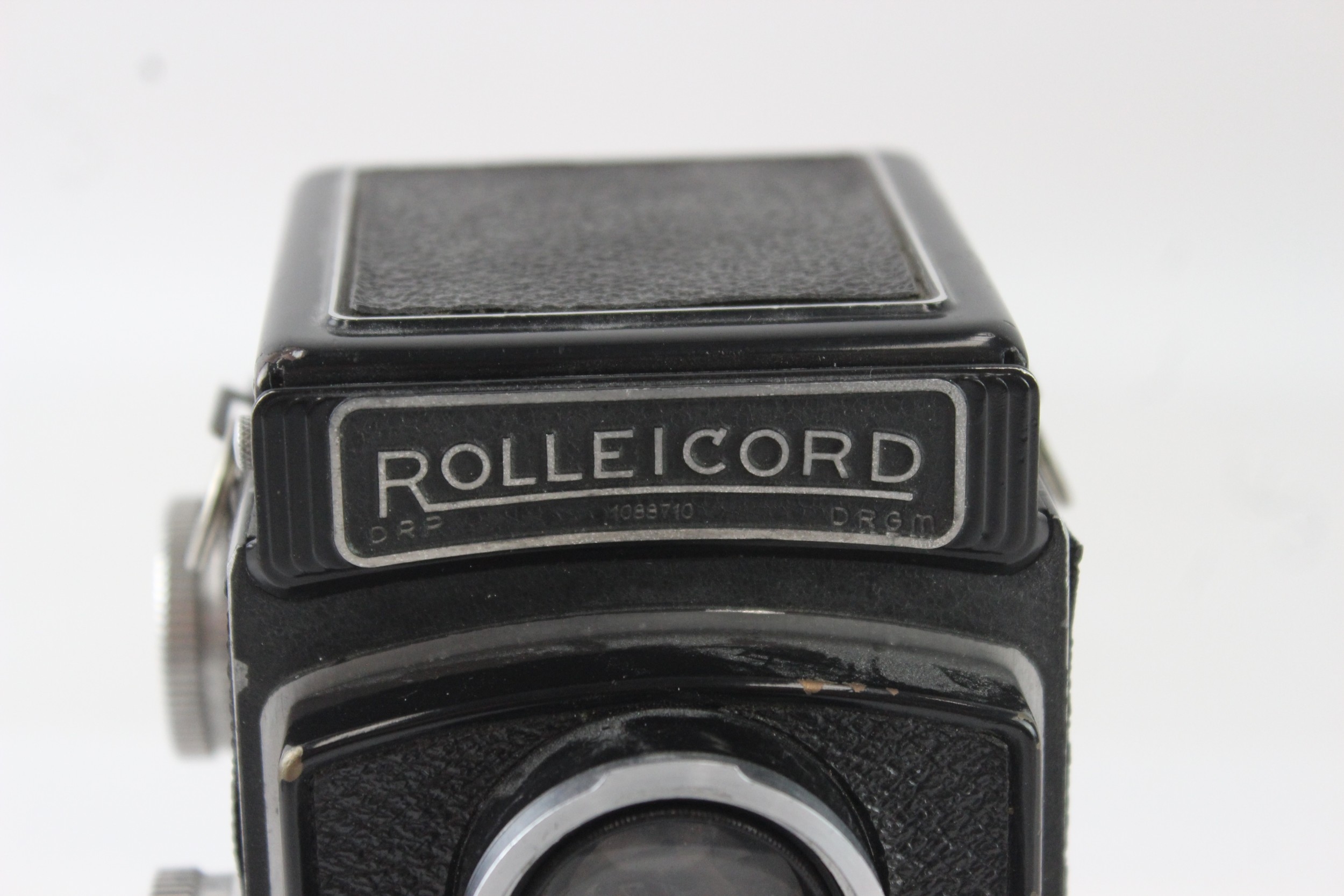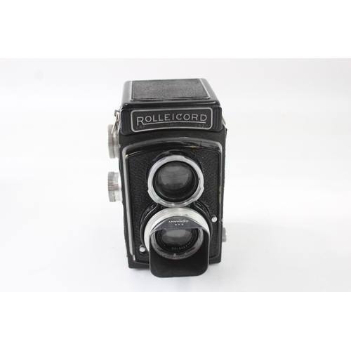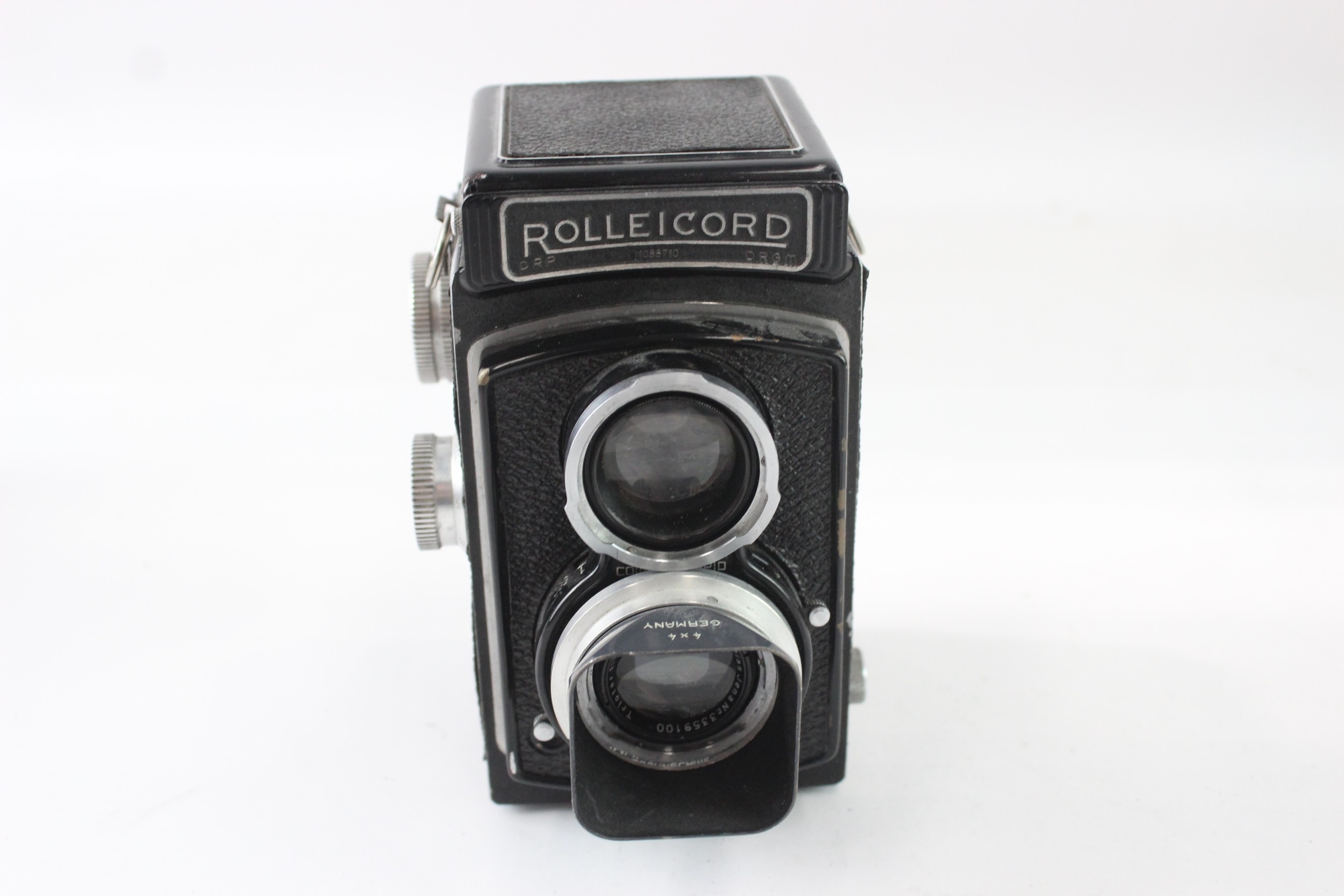 A late 1940s Franke & Heidecke Rolleicord IId model 5 TLR camera for 6x6 images on 120 film fitted with Carl Zeiss Triotar 1:3.5 7.5cm taking lens and Compur-Rapid shutter with shade