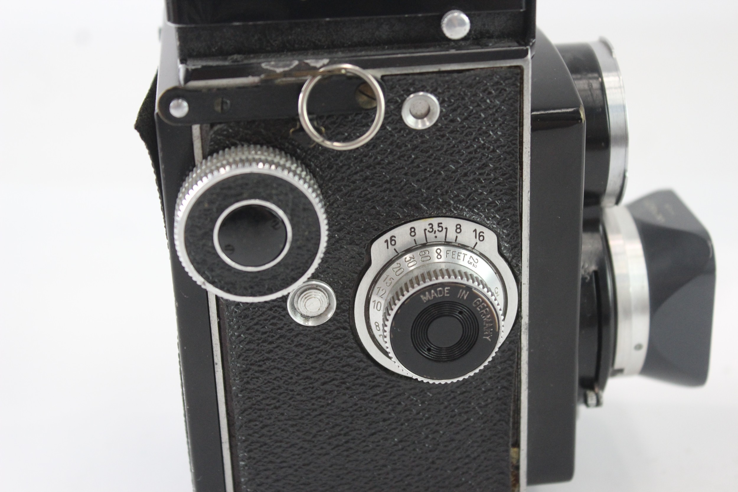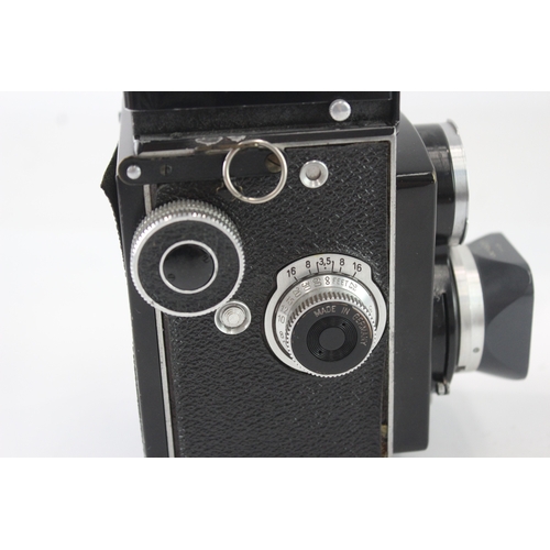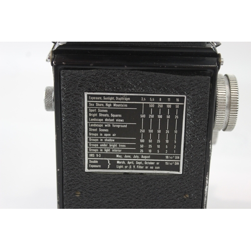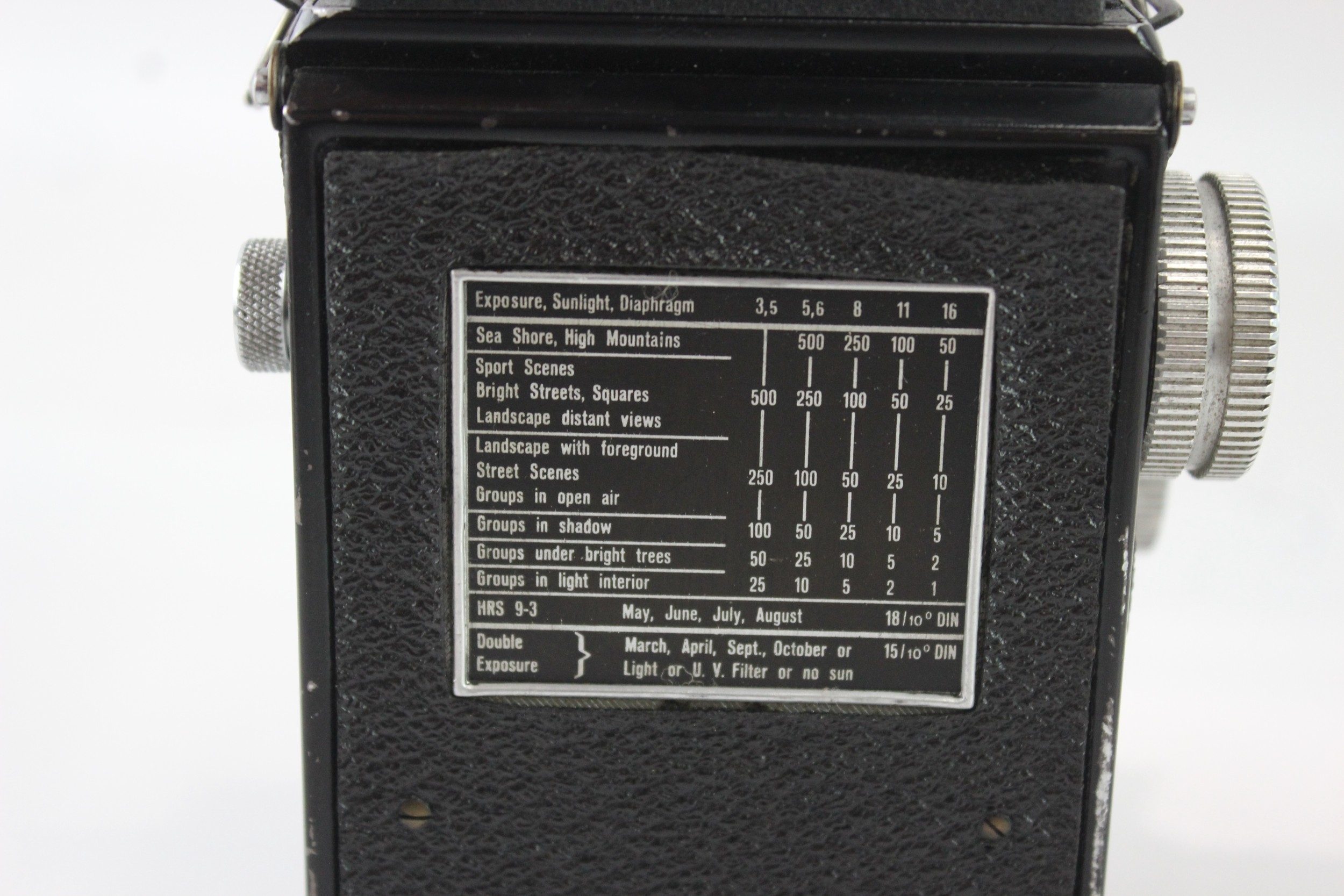 A late 1940s Franke & Heidecke Rolleicord IId model 5 TLR camera for 6x6 images on 120 film fitted with Carl Zeiss Triotar 1:3.5 7.5cm taking lens and Compur-Rapid shutter with shade