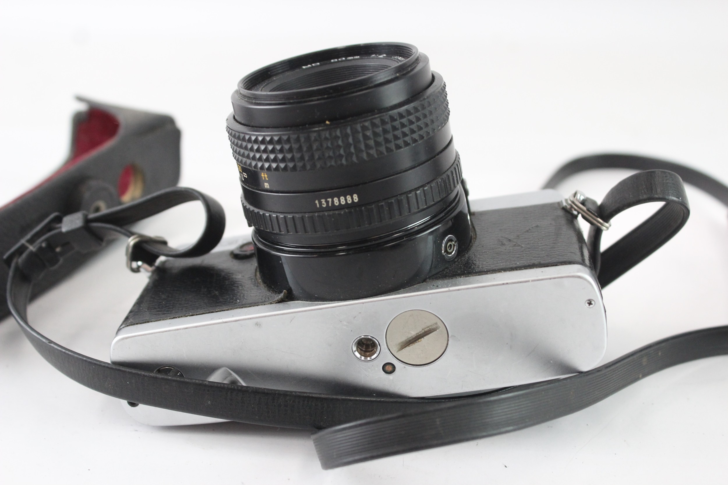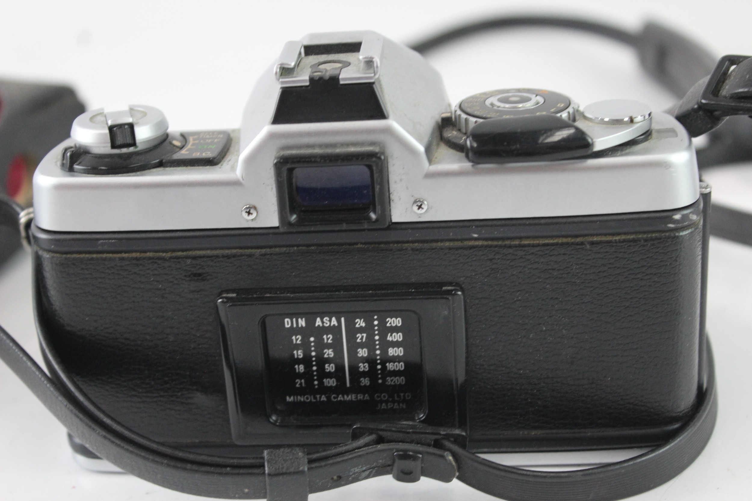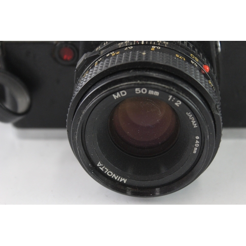 A part-cased Minolta XG2 35mm SLR camera fitted with MD 1:2 ...