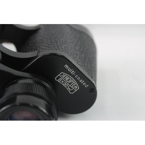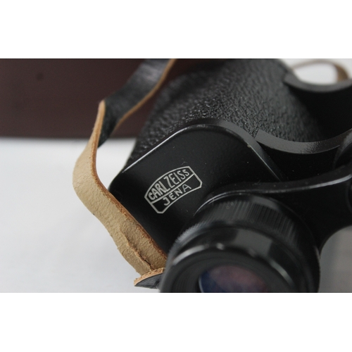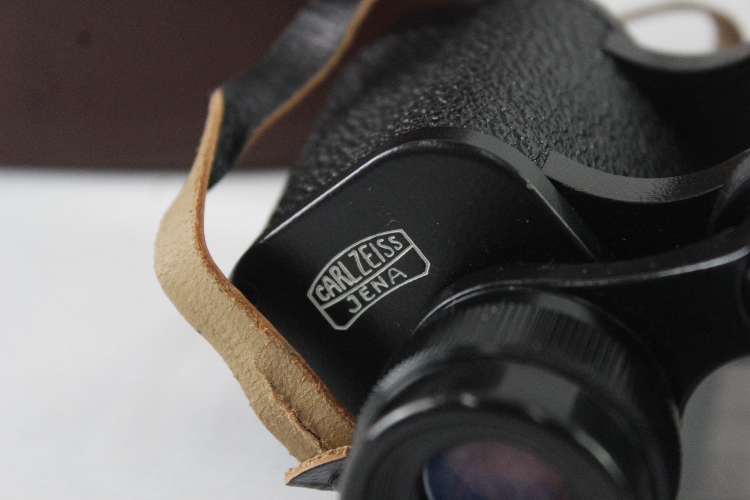 A cased pair of Carl Zeiss Jenoptem 8x30w multi-coated binoculars