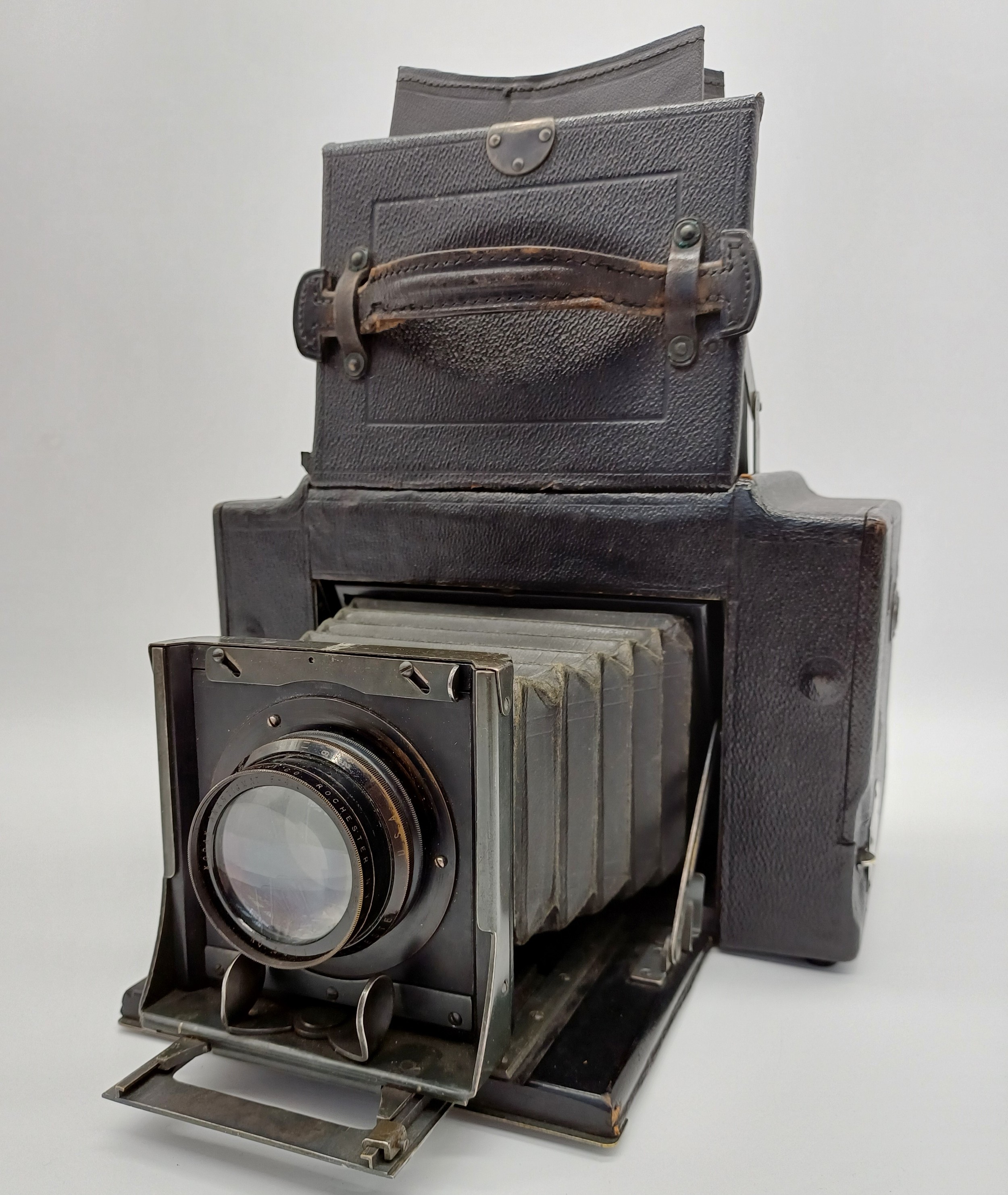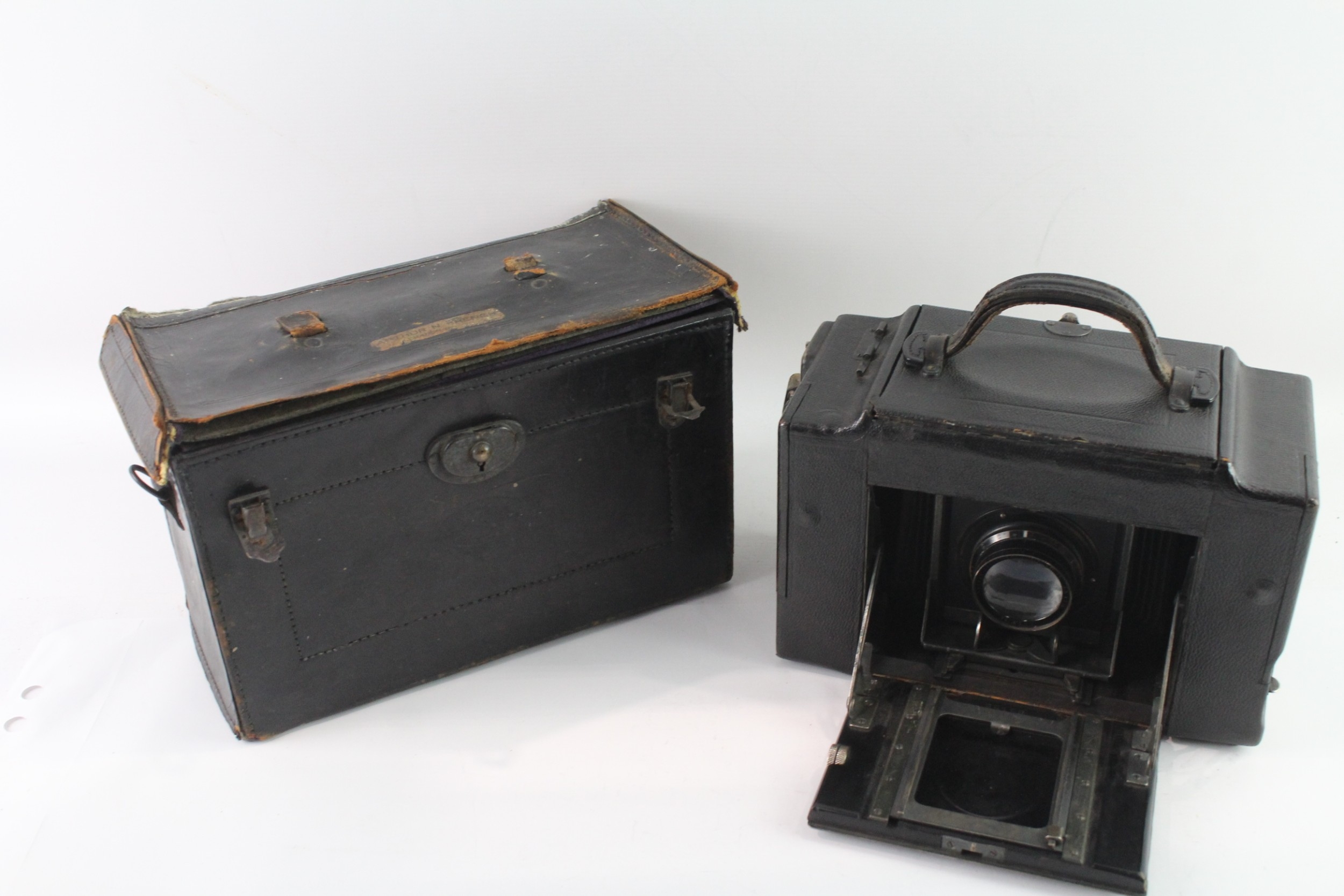 A cased c.1915-1926 Eastman Kodak Co. Folmer & Schwing Division 3A Graflex Autographic focal plane shutter SLR camera for 3¼"x5½" exposures on 122 roll film fitted with Kodak Anastigmat 4.5/7½" lens