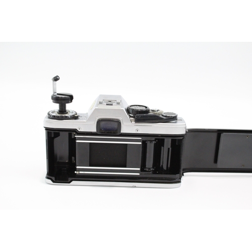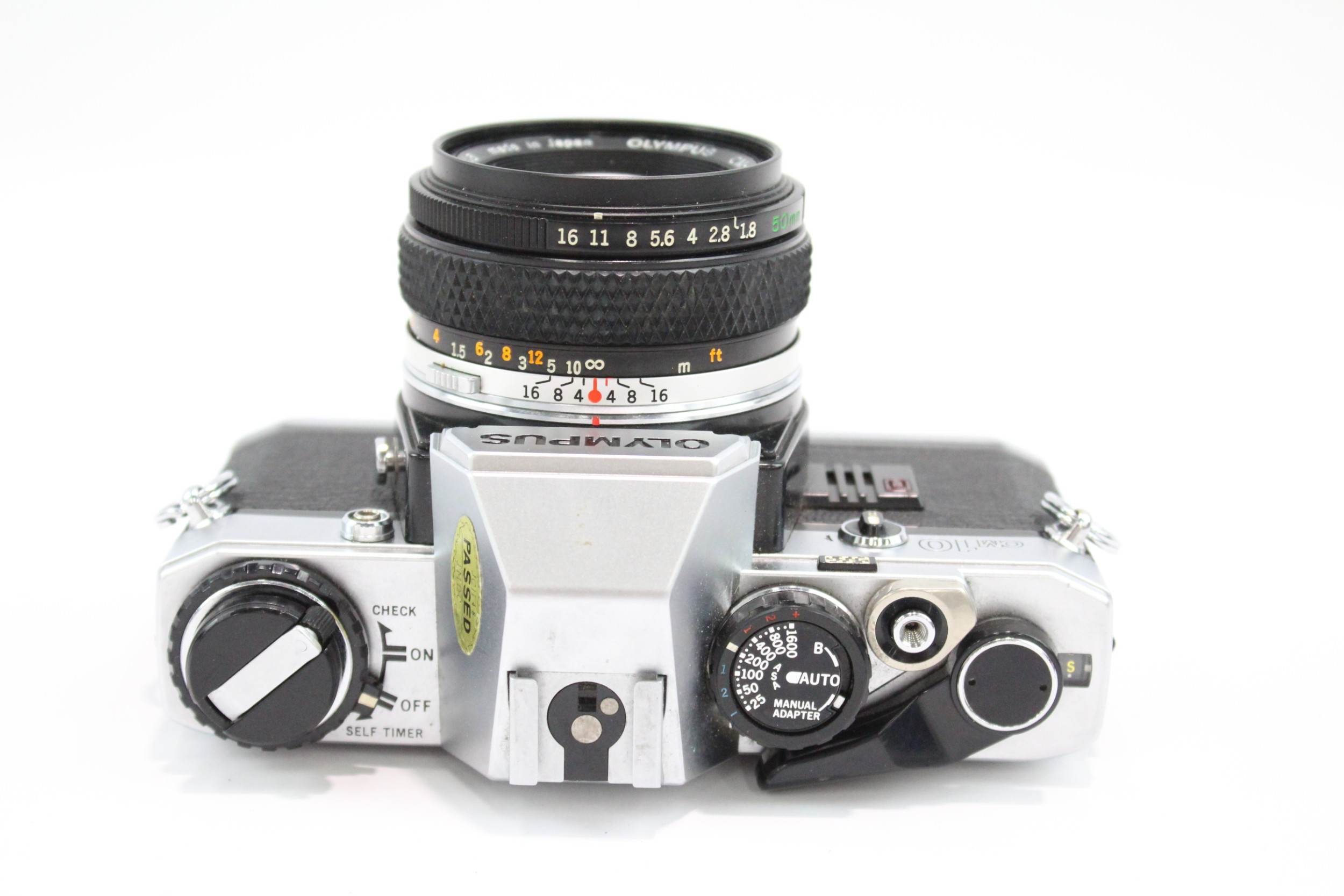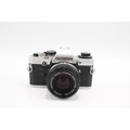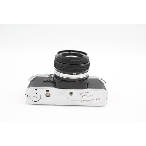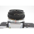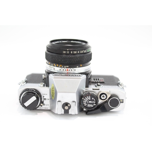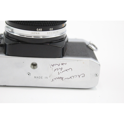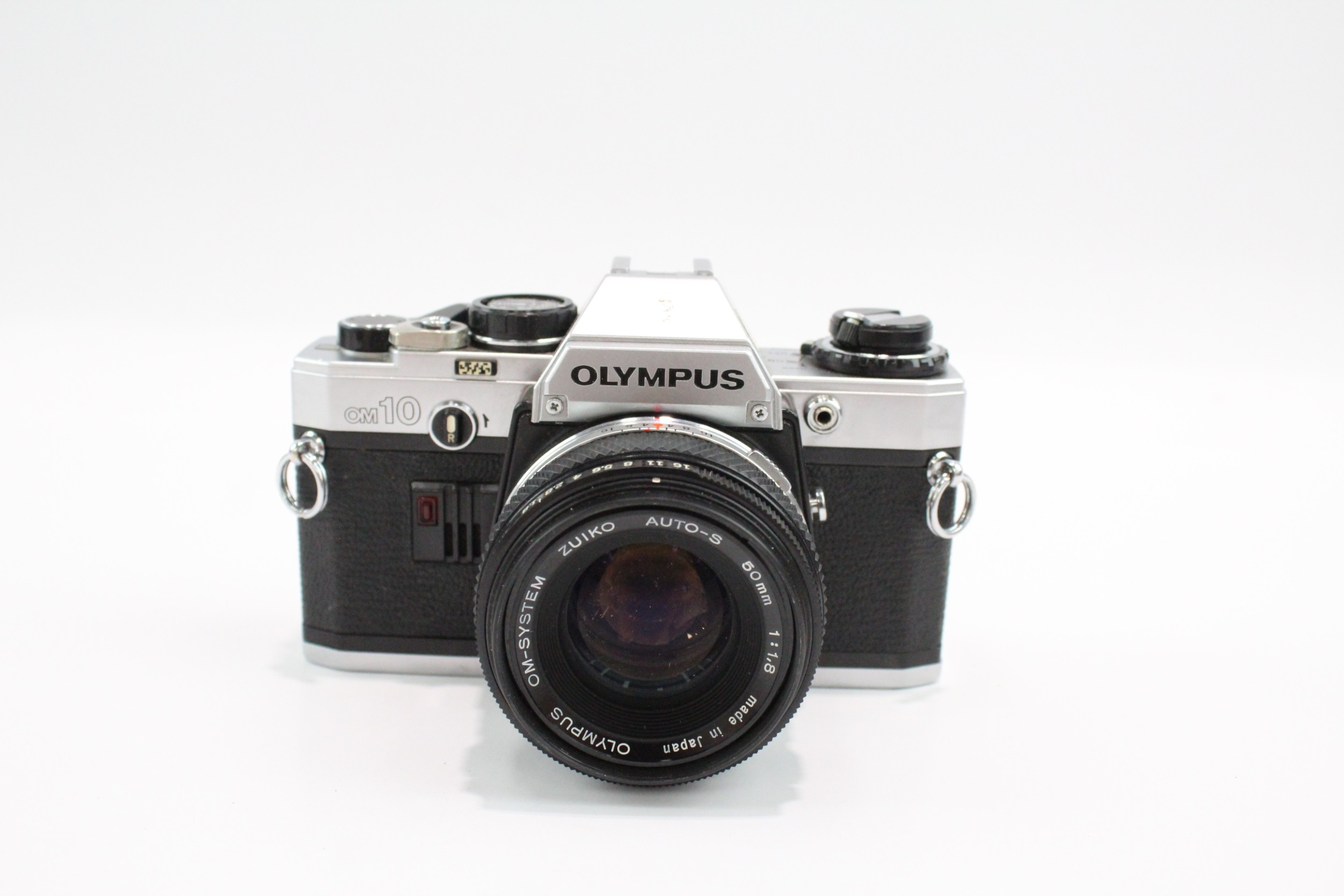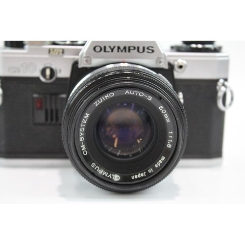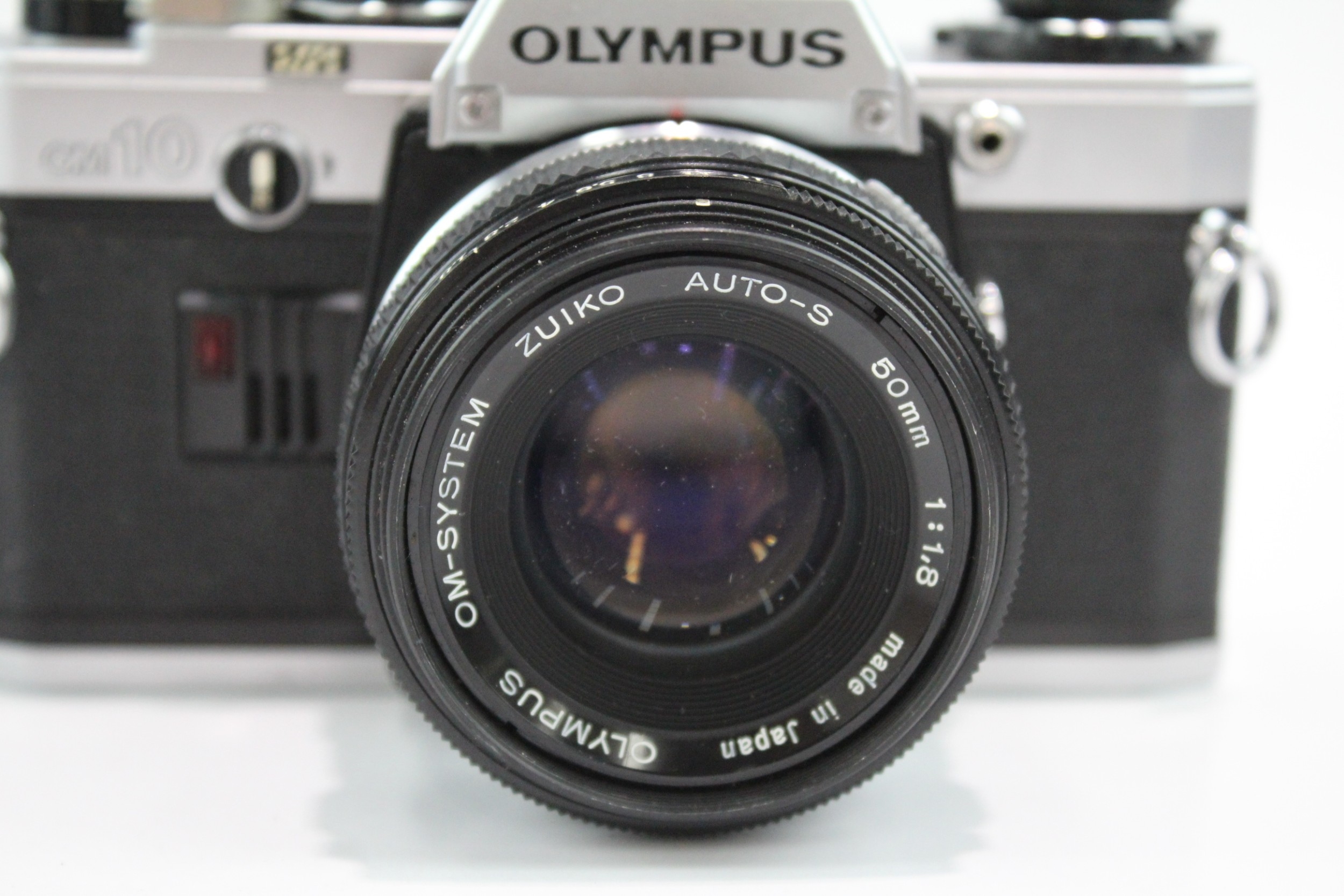 An Olympus OM10 35mm SLR camera fitted with Zuiko Auto-S 1:1.8 50mm lens