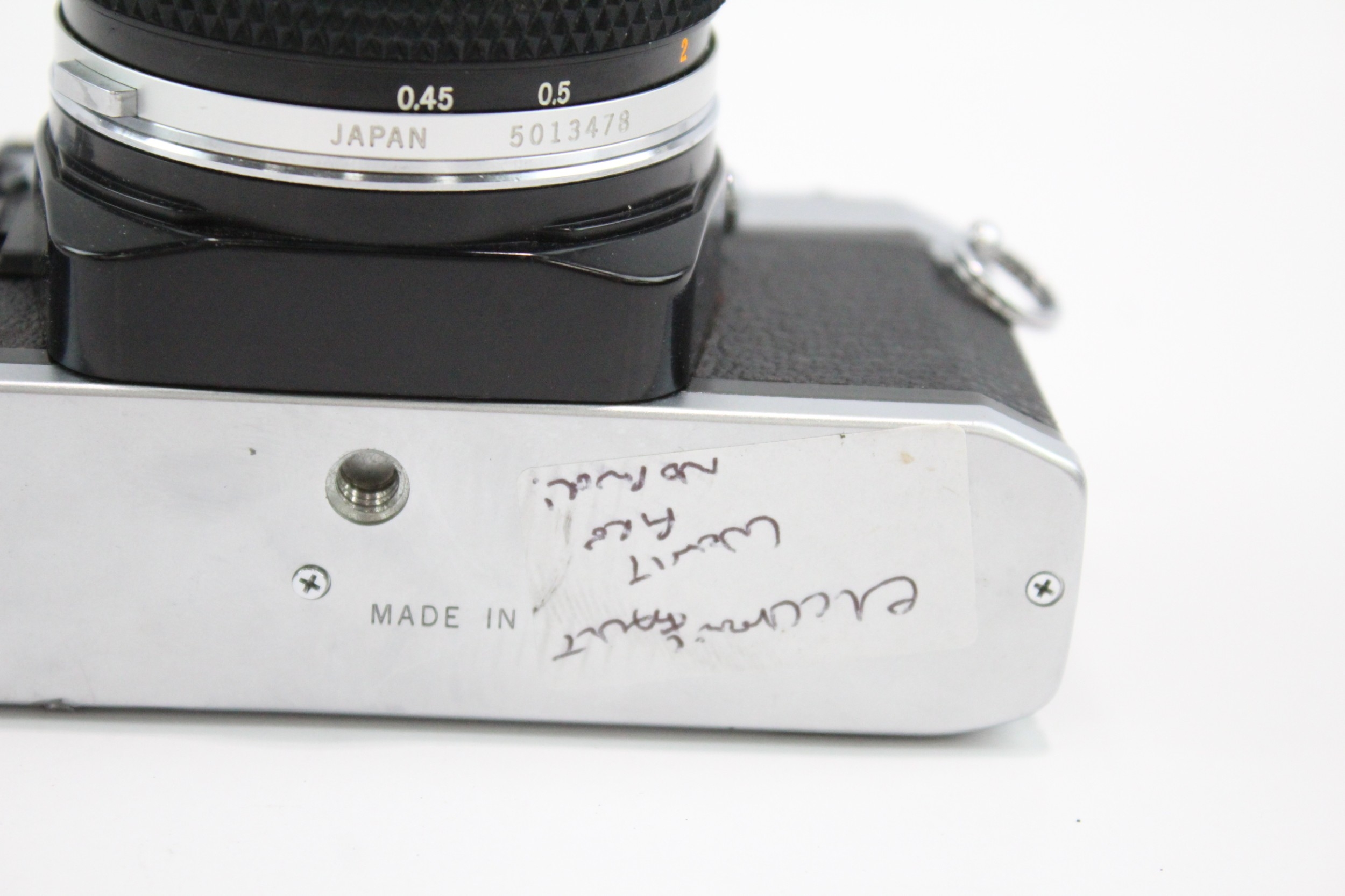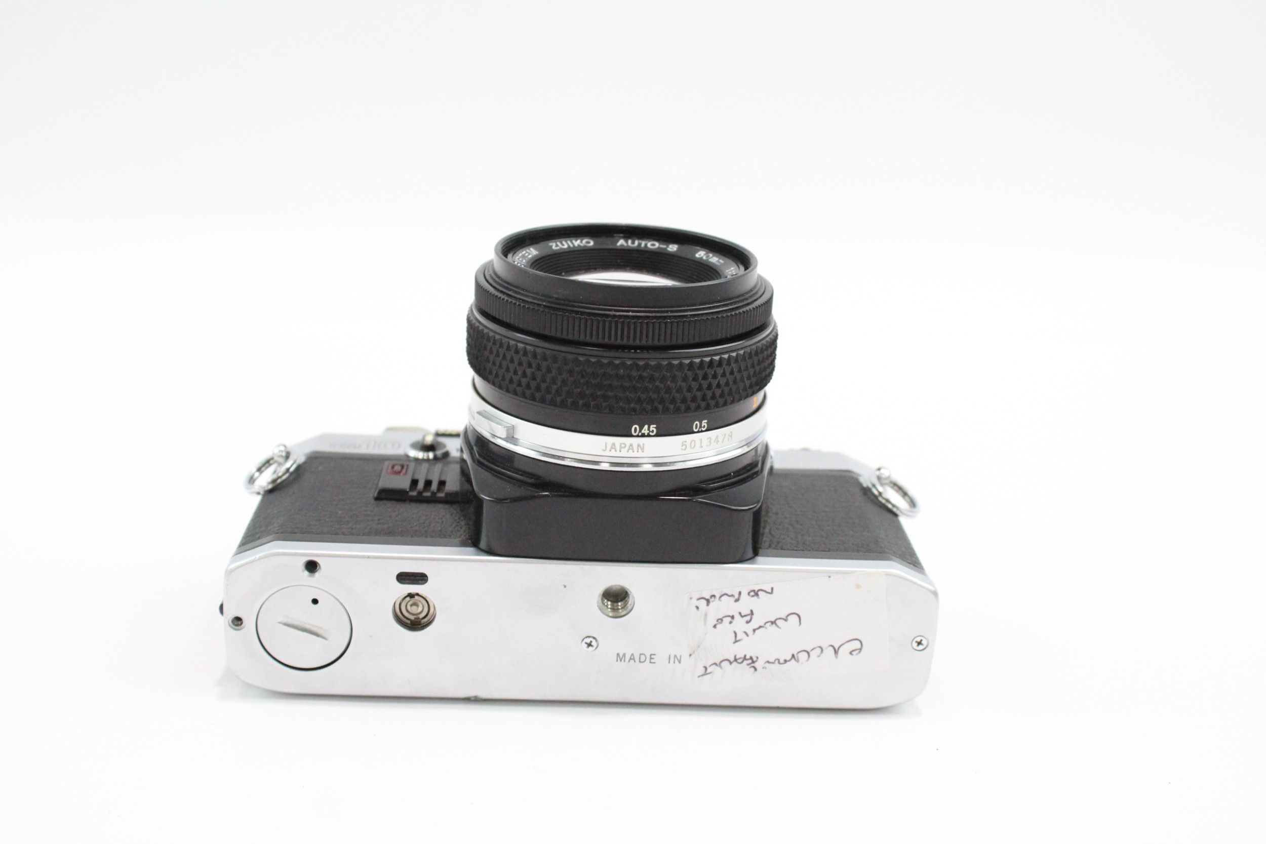 An Olympus OM10 35mm SLR camera fitted with Zuiko Auto-S 1:1...